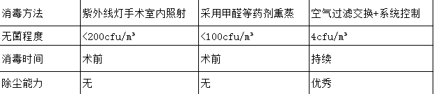 傳統手術部消毒多采用紫外線消毒或化學藥劑消毒的方式進行,由于這兩種方法相對簡單,手術部的建設環境相對要求較低。但是,這兩種方法僅僅解決了單個手術室內在手術前的消毒,隨著手術開始、人員進出以及手術中產生的各類污染,環境迅速惡化;同時對于空氣中的灰塵非菌類污染問題無法解決,而灰塵等物質又是細菌存活以及滋生的重要載體。傳統手術部的消毒技術已無法滿足現代手術的潔凈要求。